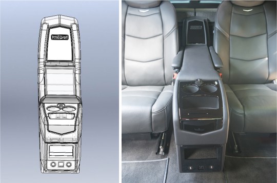 As the project continues into production, our internal team brings an extensive range of fabrication and design techniques – decades of experience with diverse traditional methods such as on-site fabrication in metal, wood, plastics and composites, and custom leather upholstery, alongside newer technologies like 3D-scanning, CAD-modeling, 3D-printing and CNC machining, and all manner of audio, multimedia and electronics engineering.