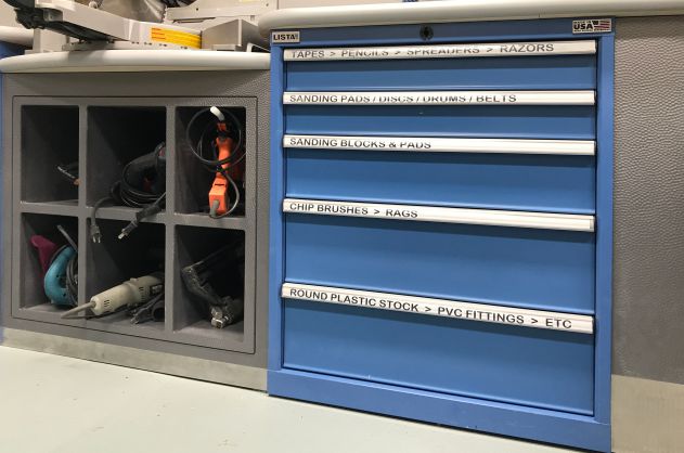 Once each project is under way, our meticulously-designed studio and logically-staged work sites also offer highly organized storage for our extensive arsenal of tools.