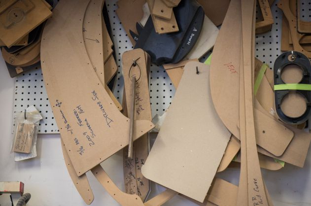 Every craftsman benefits from a robust toolbox to achieve mastery of technique and superlative results. Our multi-faceted team employs an exhaustive range of tools to handle virtually any task, which sometimes requires inventing a new tool for the task at hand. For example, we have to scribe and trace many parts. Sometimes there is no way to position a scribe or pencil in the place where you want to put down the line. Years ago, Matt started making custom shaped pencils. He would cut them up, miter them, and glue them together in the shape required to fit where they were needed. Today, everyone in the studio has several of these in their tool boxes. It is common to see a staff member cutting his pencil point off and gluing it into a new position or angle to crane it into an impossible location.